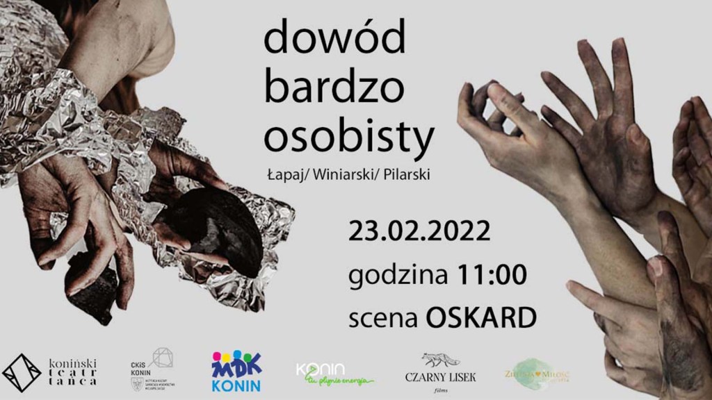 7 maja 2022 roku, na deskach CKiS DK Oskard, Koniński Teatr Tańca zaprezentował spektakl „dowód bardzo osobisty” w choreografii Katarzyny Łapaj. Po dwóch latach od premiery, mieszkańcy Konina mieli okazję ponownie doświadczyć ruchowej interpretacji powojennej historii naszego miasta. Ten spektakl wiele dla Nas znaczy. My daliśmy z siebie wszystko! Publiczność również! DZIĘKUJEMY za autentyczne reakcje z widowni podczas spektaklu, za miłe słowa, za niekończące się brawa i owacje na stojąco.