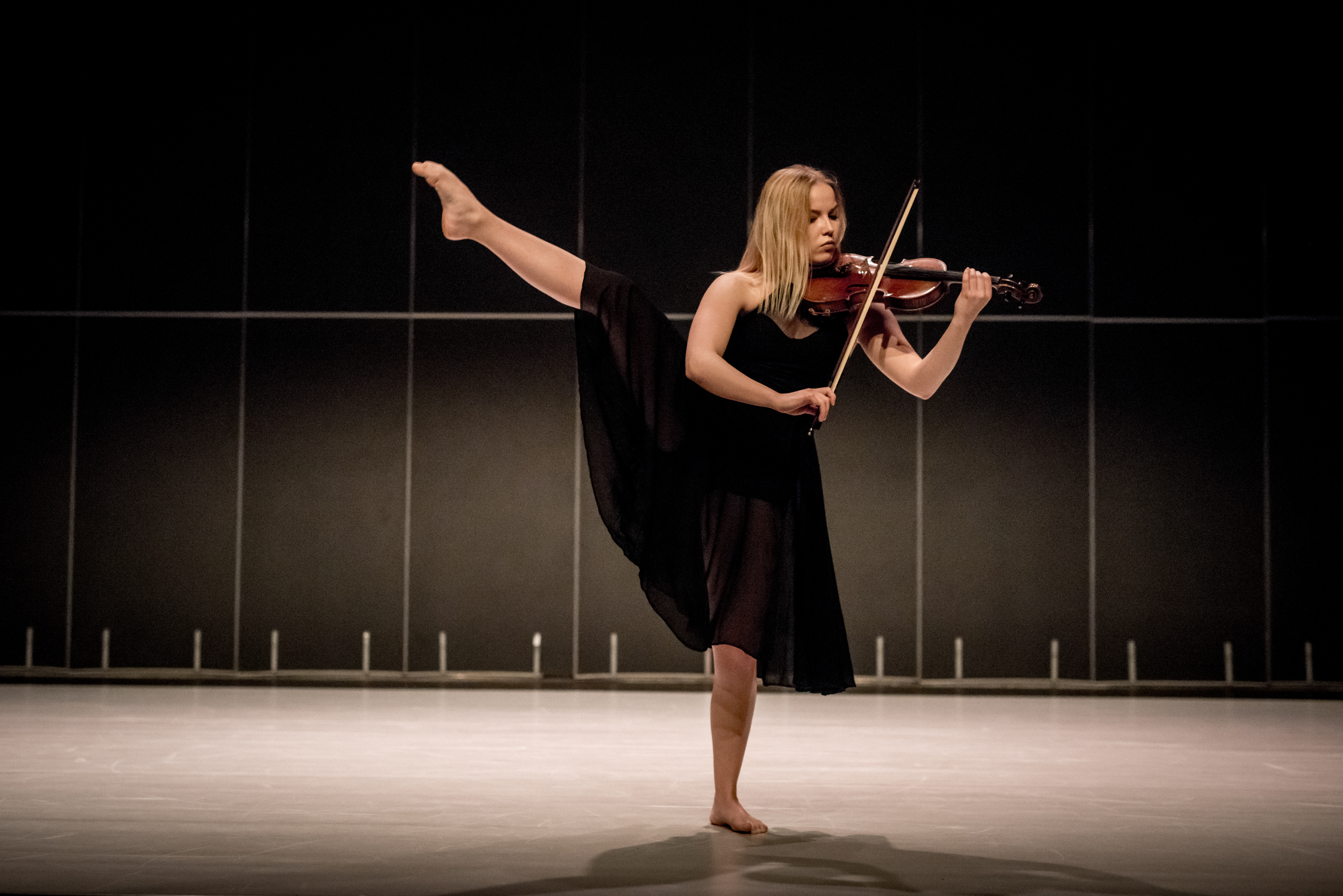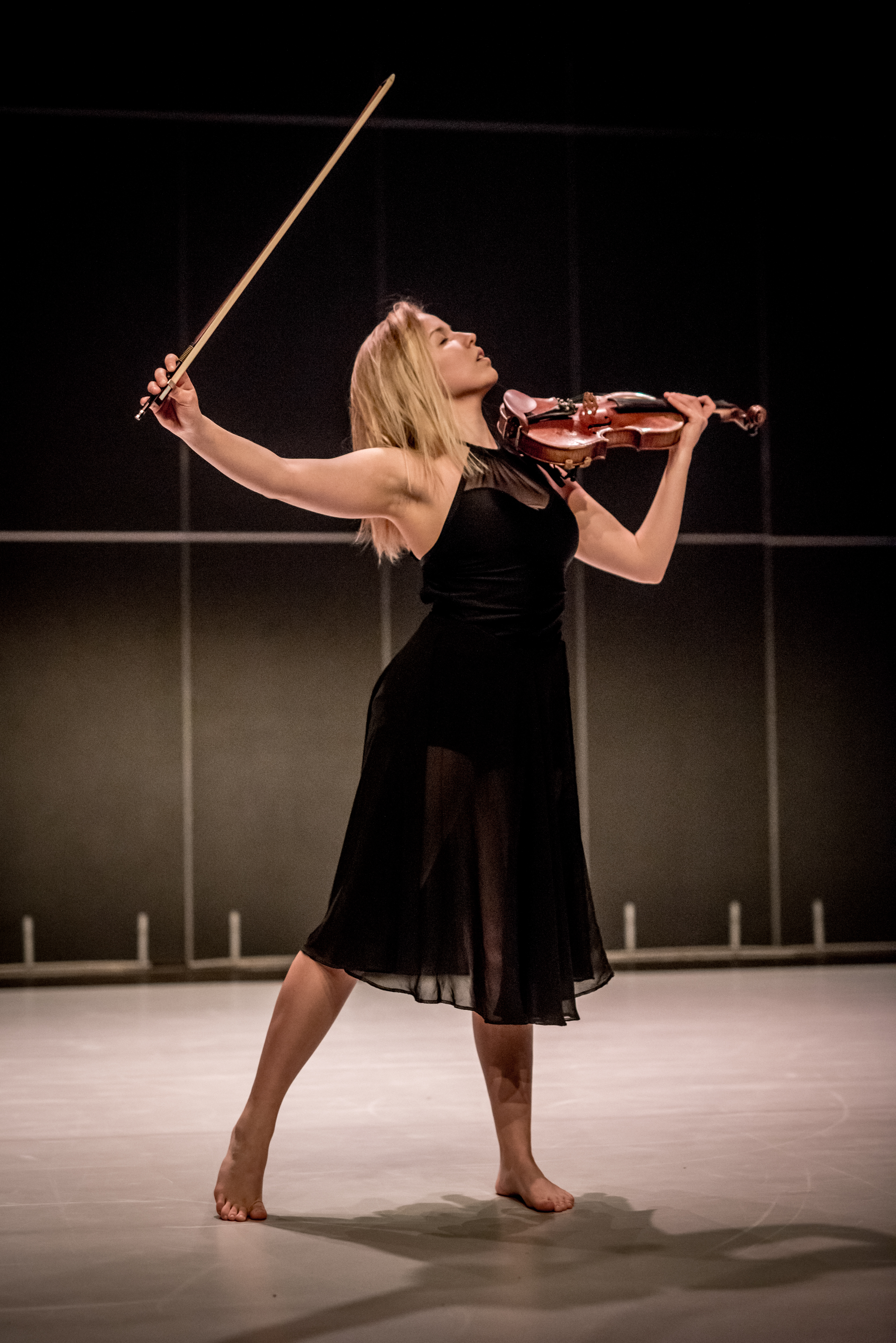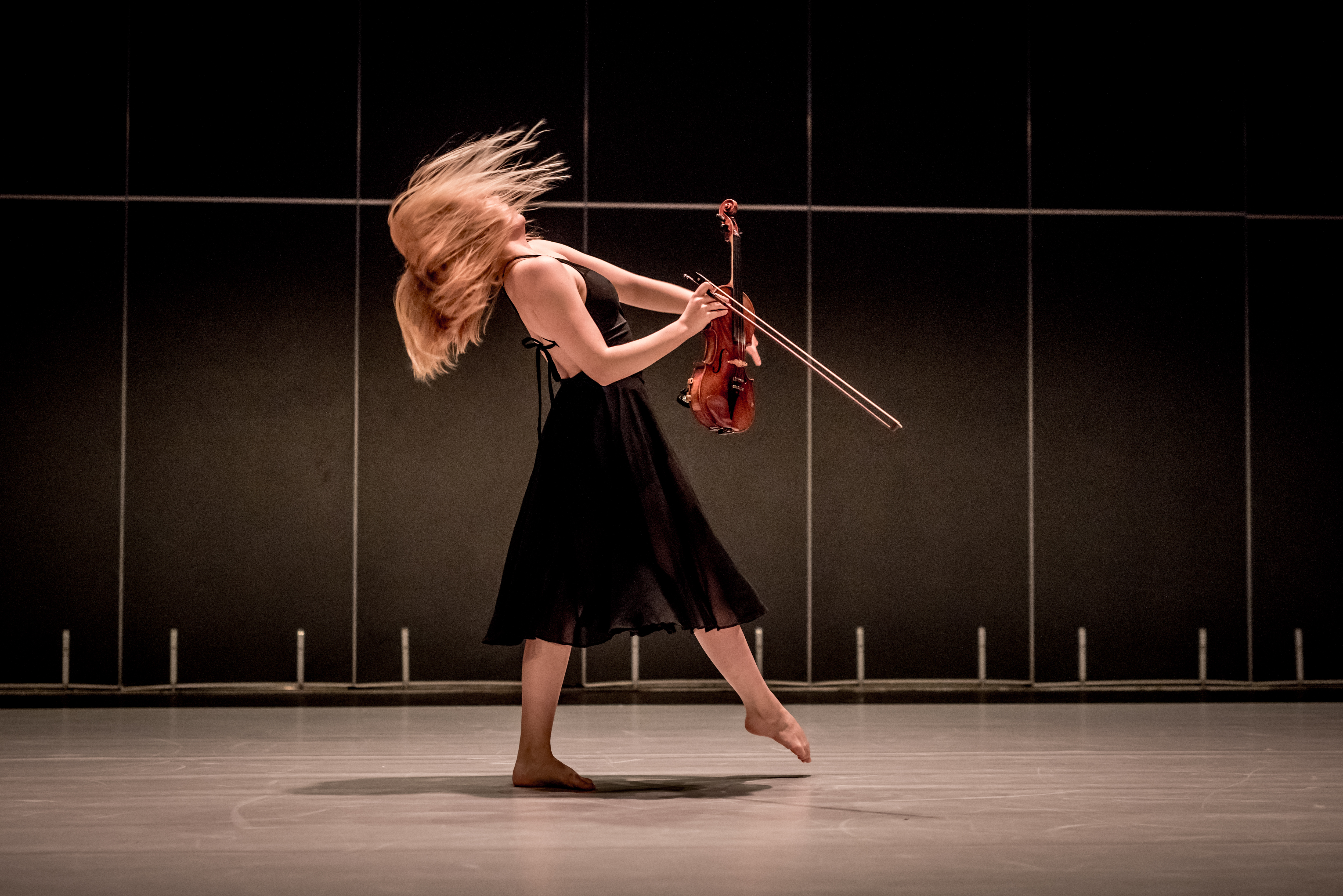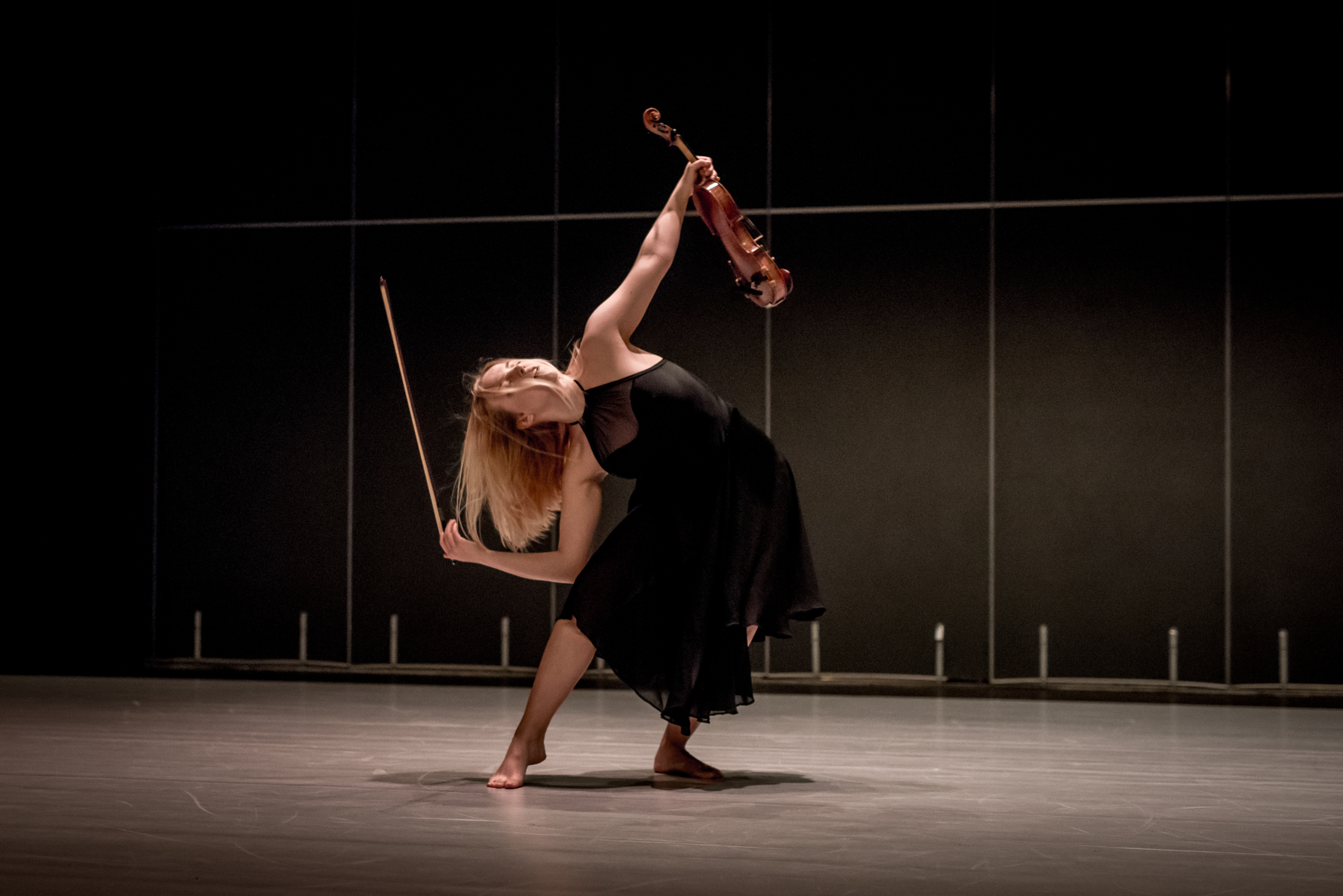 Autorka o etiudzie: Inspiracją etiudy jest wpływ muzyki na życie człowieka. W moim przypadku muzyka odegrała kluczową rolę. Przez 12 lat nauki w Państwowej Szkole Muzycznej byłam z nią ściśle związana, można powiedzieć, że poznałam ją od podszewki. Wychowywałam się w natłoku obowiązków, a gdy nie dawałam już rady, zawsze sięgałam po muzykę i nagle wszystko stawało się prostsze, muzyka zawsze orzeźwiała mój umysł. To samo chcę pokazać w mojej etiudzie. Podczas gry na skrzypcach zawsze zachodzi we mnie pewna zmiana, tak jakbym dopiero otworzyła oczy. Druga część etiudy przedstawia właśnie to jak skrzypce, muzyka, a przede wszystkim komponowanie muzyki wpływa na mój światopogląd, na mój ruch. Skłamałabym gdybym powiedziała, że Szkoła Muzyczna nie wpłynęła na mój taniec. Uważam nawet, że to jakim człowiekiem teraz jestem jest dziełem tych dwóch sztuk – muzyki i tańca. Odkąd próbuję swoich sił jako choreograf i jako kompozytor muzyka inspiruje mnie do poszukiwania nowego ruchu, a taniec inspiruje mnie do tworzenia muzyki.